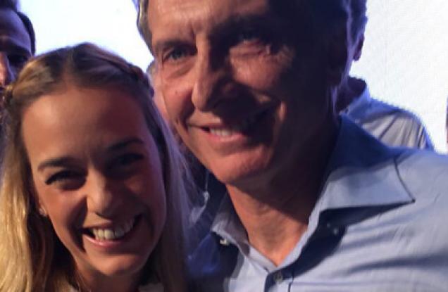 | Macri con Lilian Tintori, espoza del fascista Leopoldo López y vocera de la derecha venezolana en foros internacionales. |